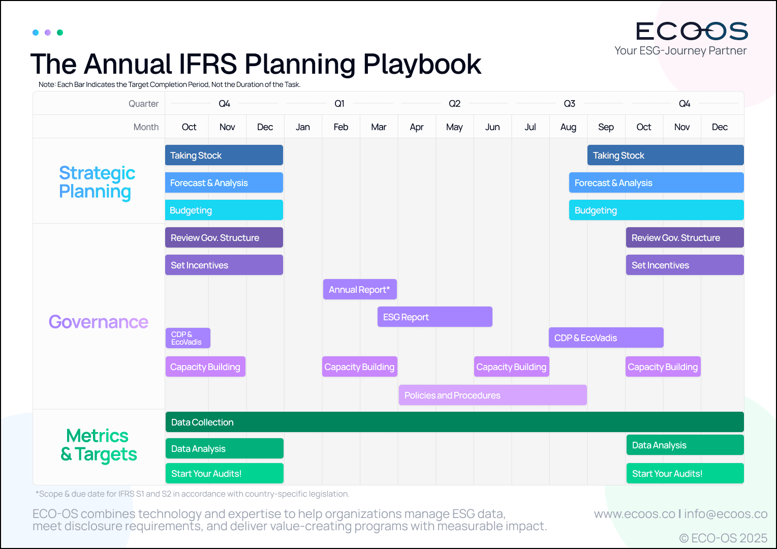 Getting ready to prepare your IFRS sustainability disclosure? Check out ECO-OS's ESG Manager's IFRS Survival Guide for a printable calendar and checklists to keep you on track throughout the year.